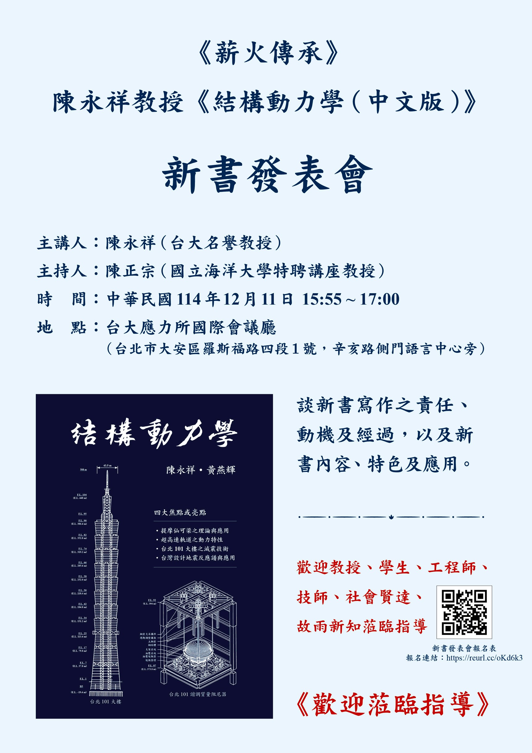 《薪火傳承》陳永祥教授《結構動力學(中文版)》新書發表會